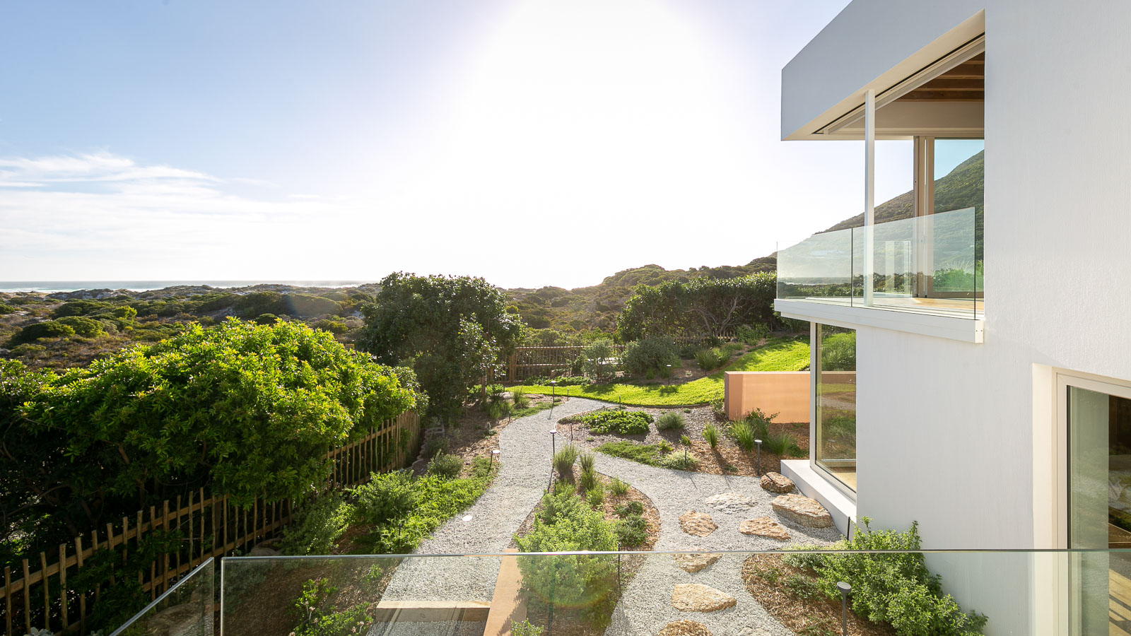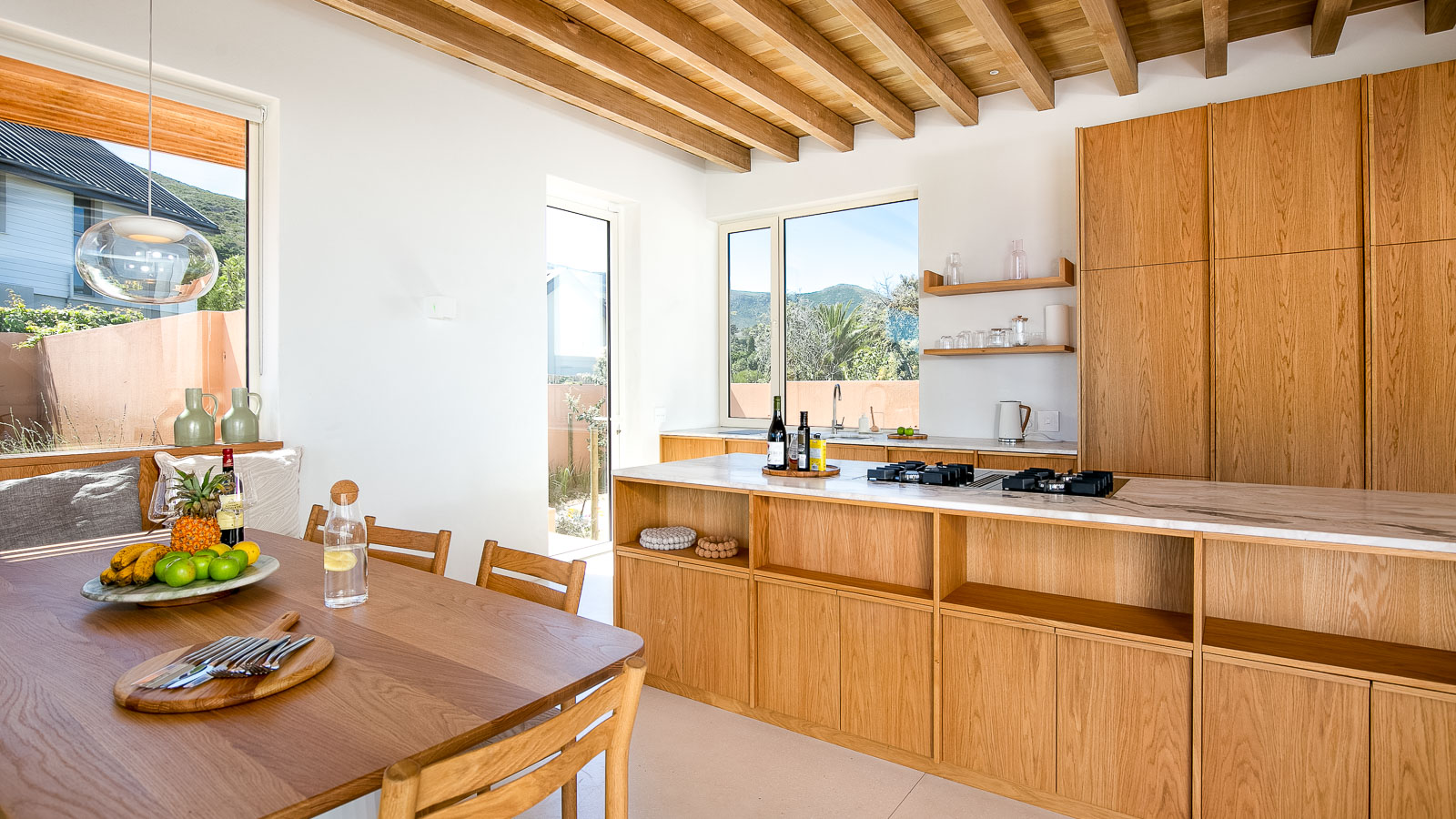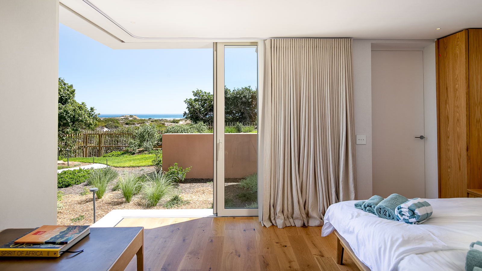![]() ![]() | Fourth bedroom en-suite (downstairs apartment) • King size bed extra length • Large glass sliding pocket doors • Spectacular views of the beach and ocean • Direct access to garden with outdoor table and 2 chairs • Spacious wardrobe • Desk • Well equipped kitchenette with bar fridge, Nespresso machine, kettle, toaster, cutlery • Dining table with 4 chairs • En suite bathroom with shower, basin and toilet • Heated towel rails • Underfloor heating in bathroom • Hair dryer provided • Quality cotton linen and towels • Pool-, bath-, hand towels and face cloth • Shower gel, shampoo and soap |