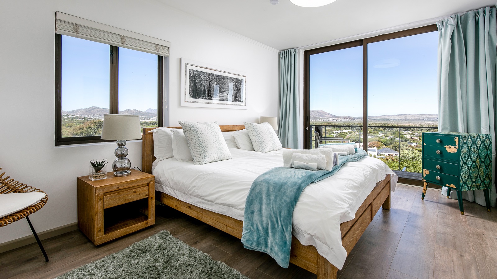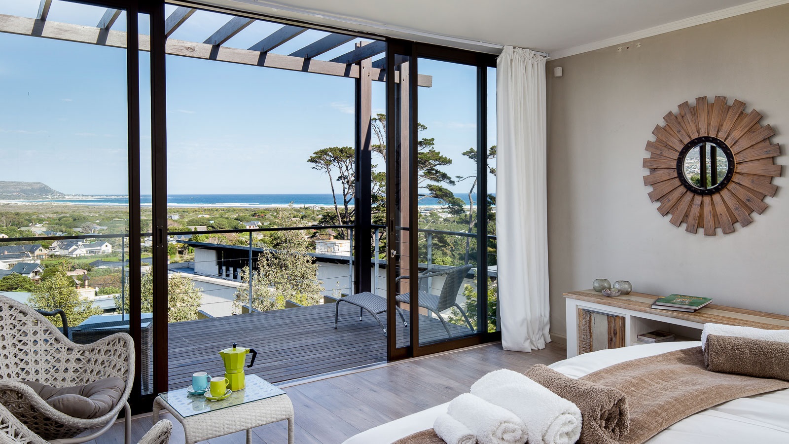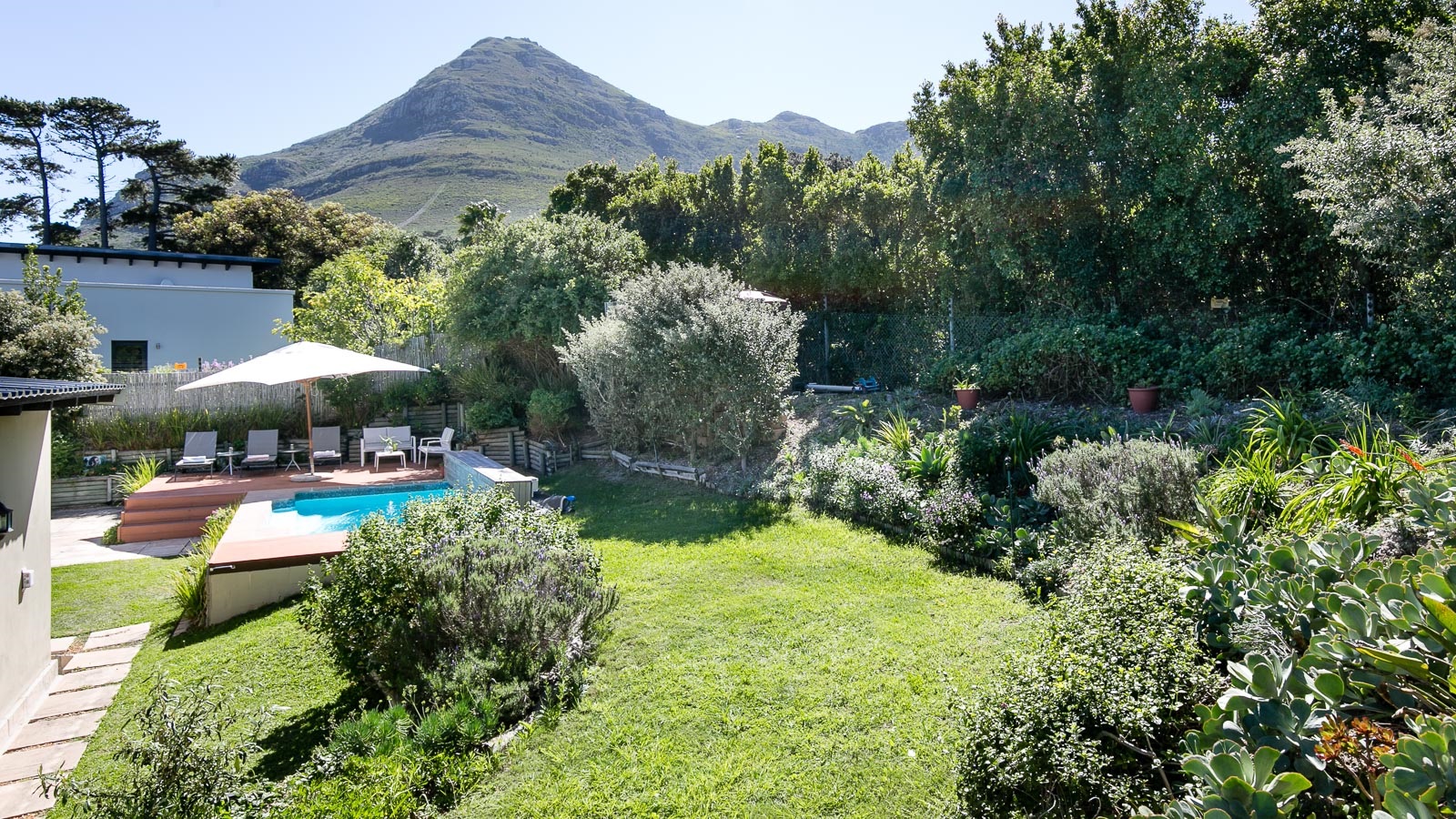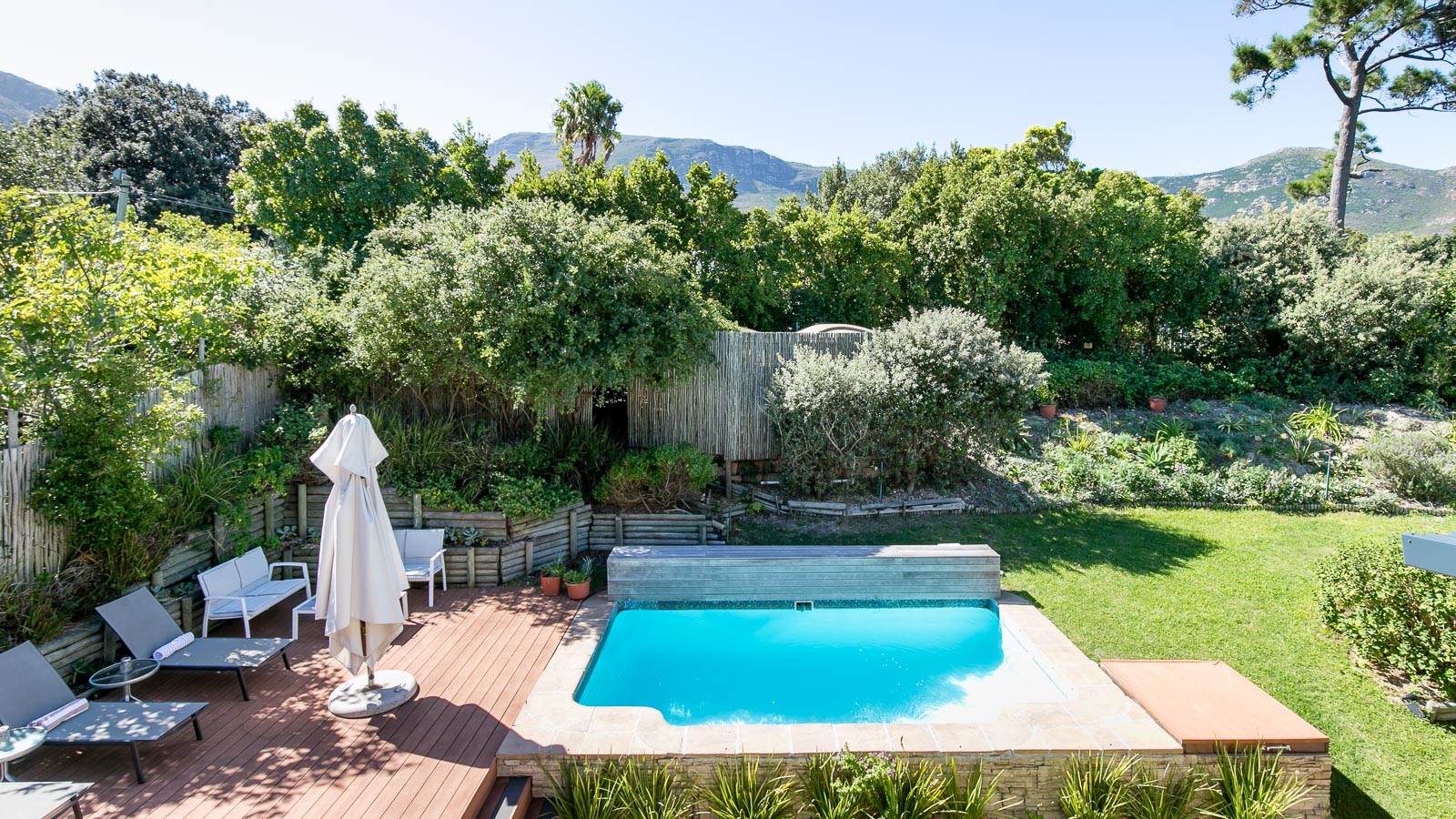 On 330 sqm Chapman's View Villa compromises 4 bedrooms, three bathrooms and an open plan living-, dining- and kitchen area with access to two verandas. All bedrooms are equipped with beds in extra length in King size or Queen size and finest linen. Two bedrooms have a balcony with a stunning view over the valley and the sea, the two others provide nice views of the mountains. Enjoy great views of the sea from the lounge and the front garden and lovely mountain views from the pool area. The gourmet kitchen is a chef’s delight. It's fully equipped with Cesarstone surfaces and chrome appliances.