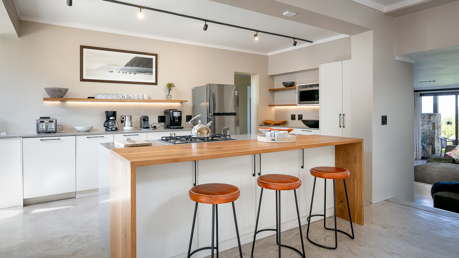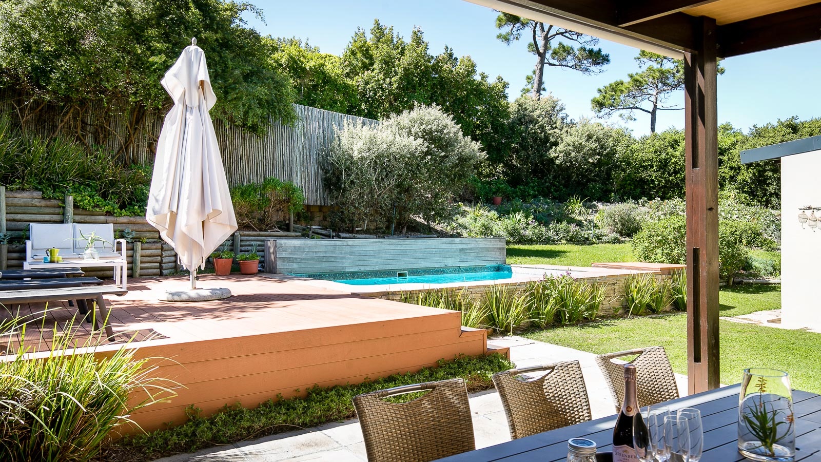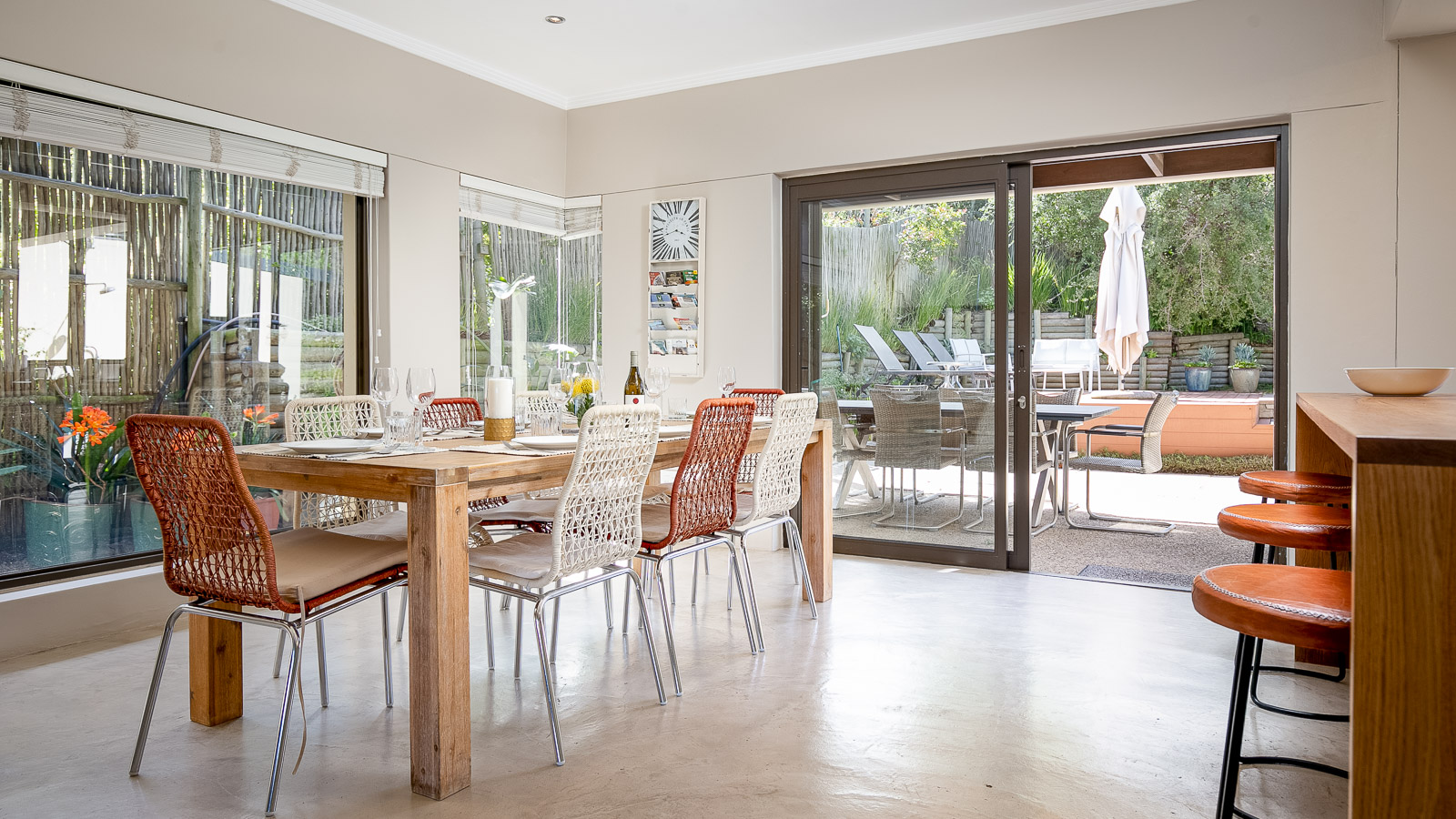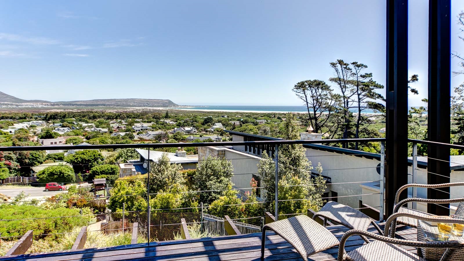 On 330 sqm Chapman's View Villa compromises 4 bedrooms, three bathrooms and an open plan living-, dining- and kitchen area with access to two verandas. All bedrooms are equipped with beds in extra length in King size or Queen size and finest linen. Two bedrooms have a balcony with a stunning view over the valley and the sea, the two others provide nice views of the mountains. Enjoy great views of the sea from the lounge and the front garden and lovely mountain views from the pool area. The gourmet kitchen is a chef’s delight. It's fully equipped with Cesarstone surfaces and chrome appliances.