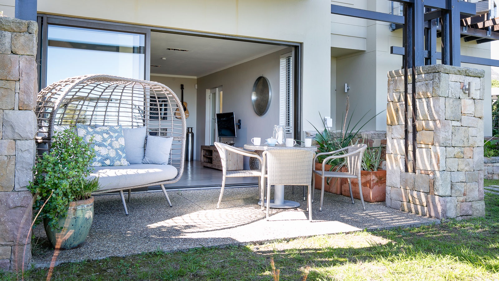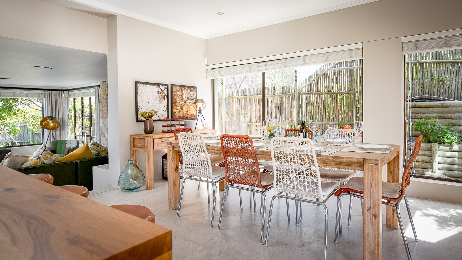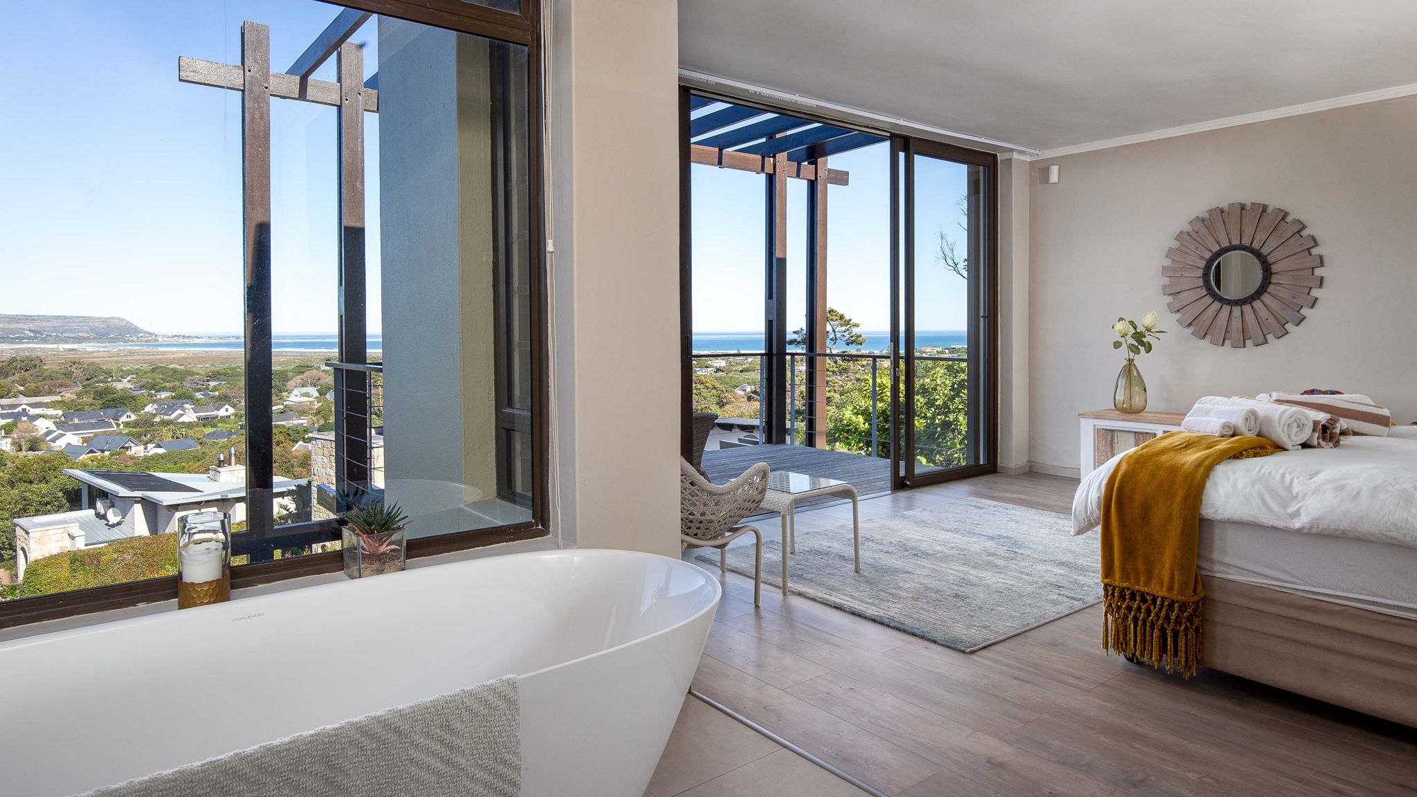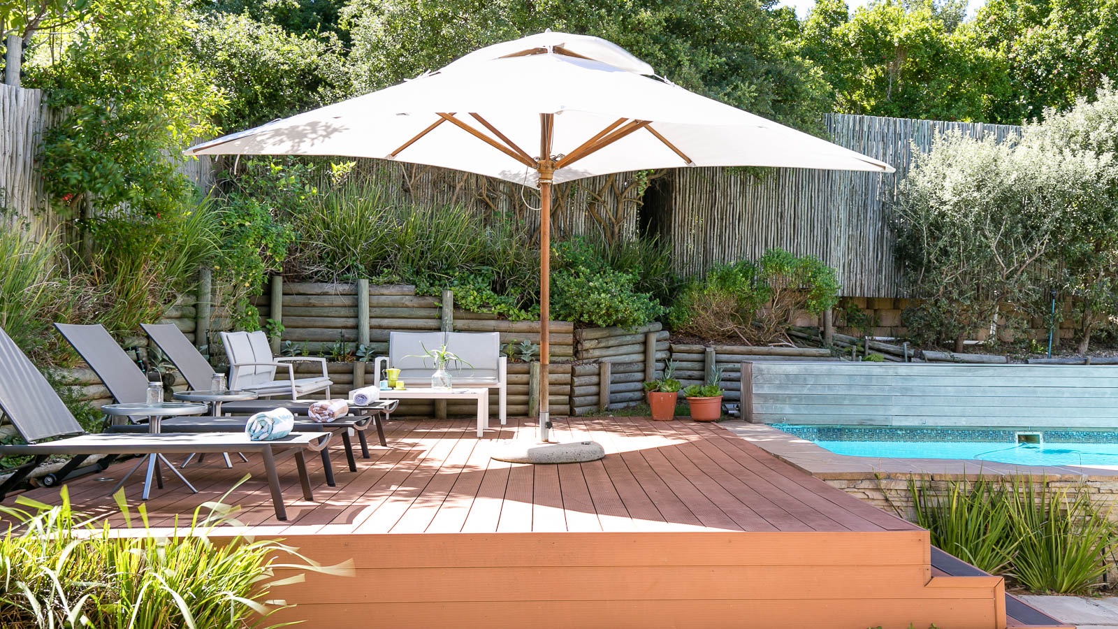 On 330 sqm Chapman's View Villa compromises 4 bedrooms, three bathrooms and an open plan living-, dining- and kitchen area with access to two verandas. All bedrooms are equipped with beds in extra length in King size or Queen size and finest linen. Two bedrooms have a balcony with a stunning view over the valley and the sea, the two others provide nice views of the mountains. Enjoy great views of the sea from the lounge and the front garden and lovely mountain views from the pool area. The gourmet kitchen is a chef’s delight. It's fully equipped with Cesarstone surfaces and chrome appliances.