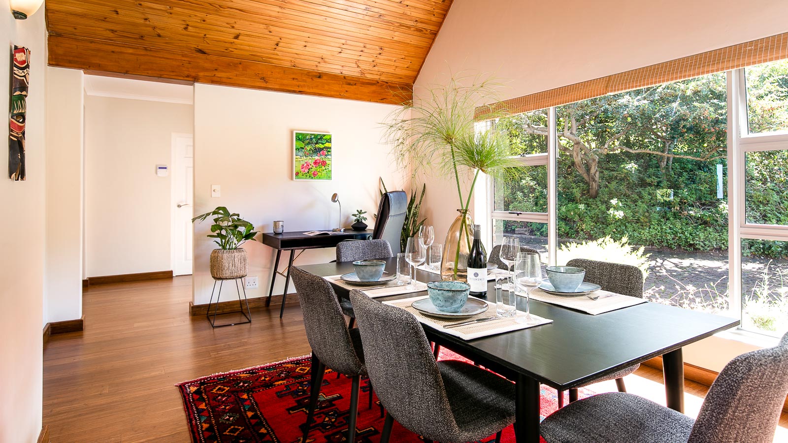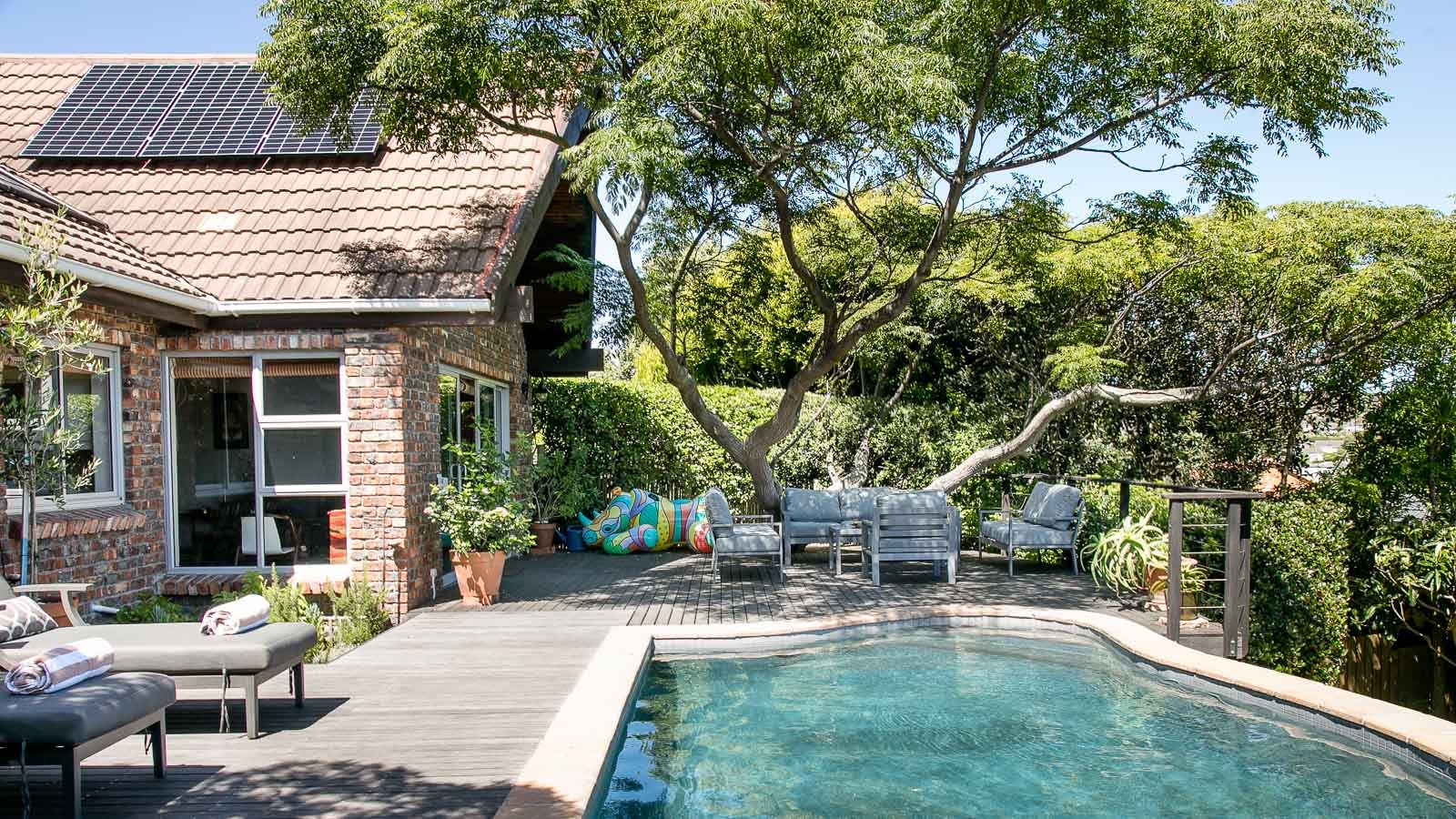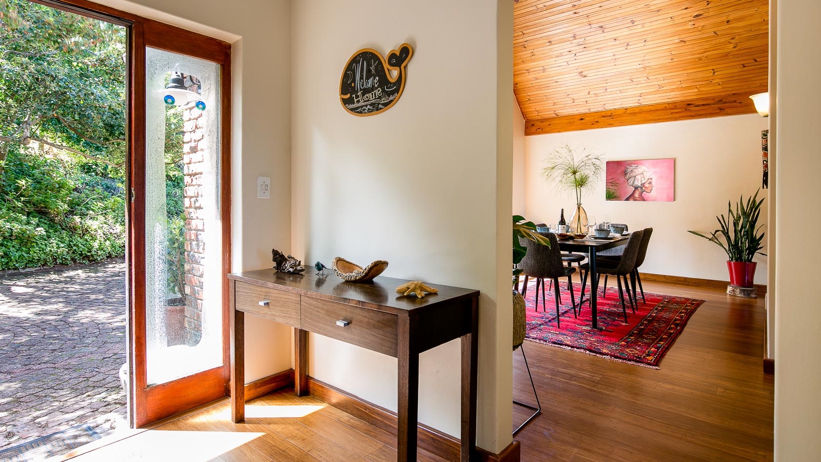 Hidden Gem is a unique 3 bedroom self catering holiday house with a special vibe. Enjoy the amazing views from the large veranda and breathtaking African sun sets over the sea while having a braai in the outdoors.