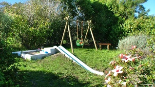 Little Paradise is an ideal destination for families with children. Your small ones will have special fun at the pool and on our two playgrounds with slide, swings, sand pit, monkey bars, trampoline, balance beam, slackline and ninja slackline. And in our walking cages they come close to our chickens. Watching our neighbours horses from our small observing place is especially for girls a must.