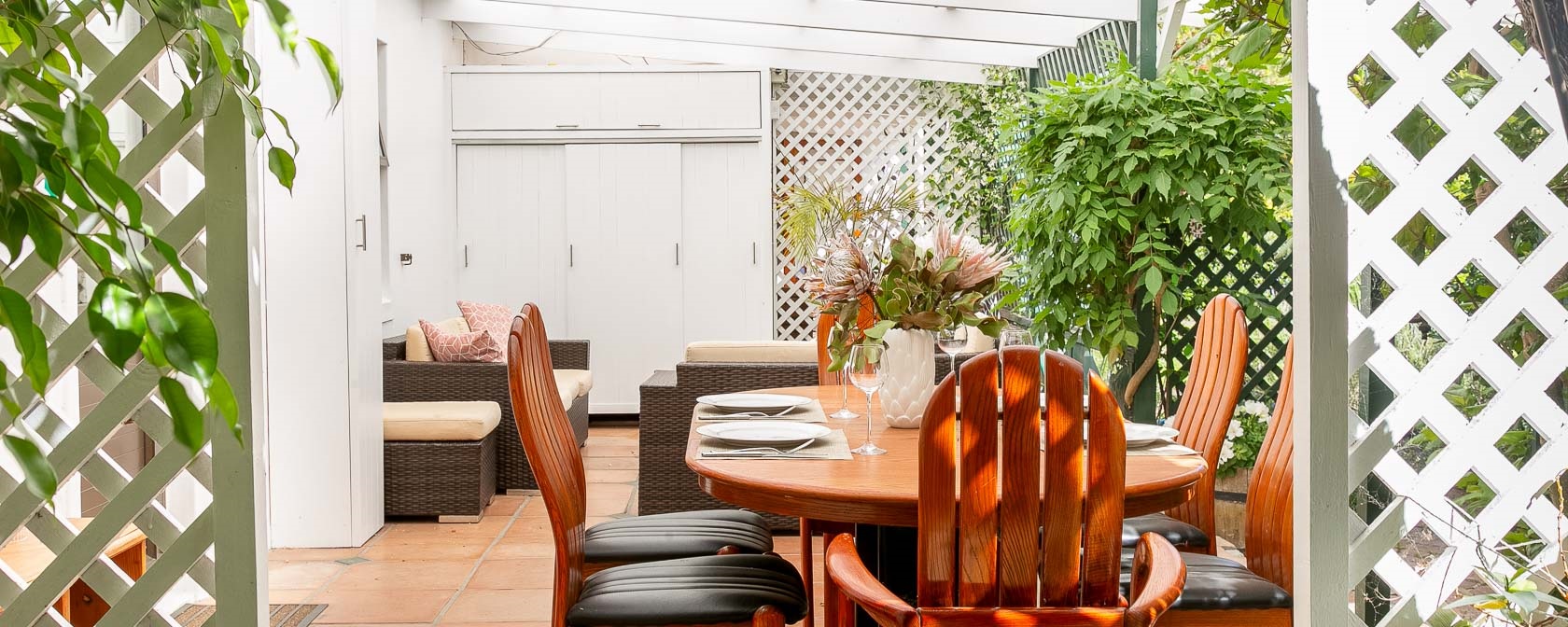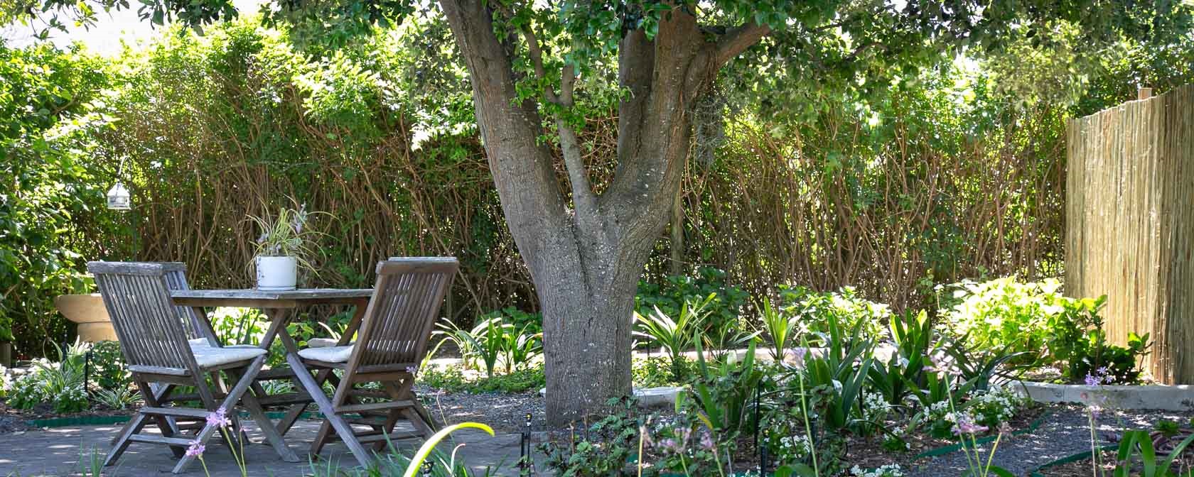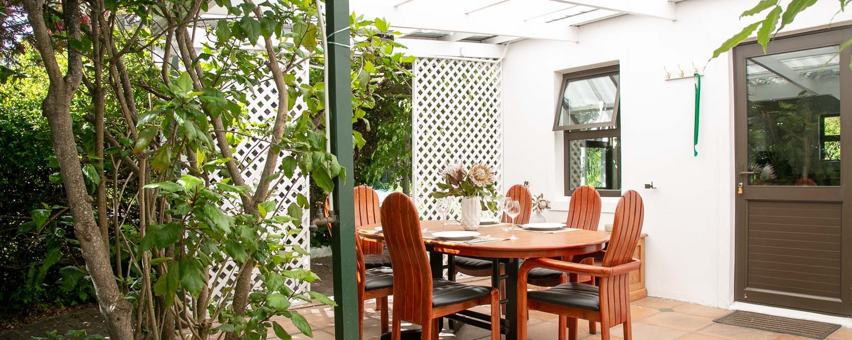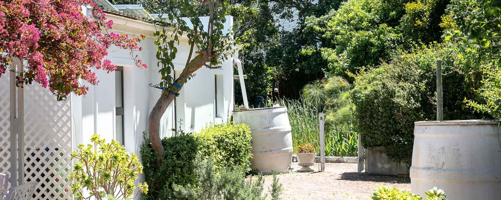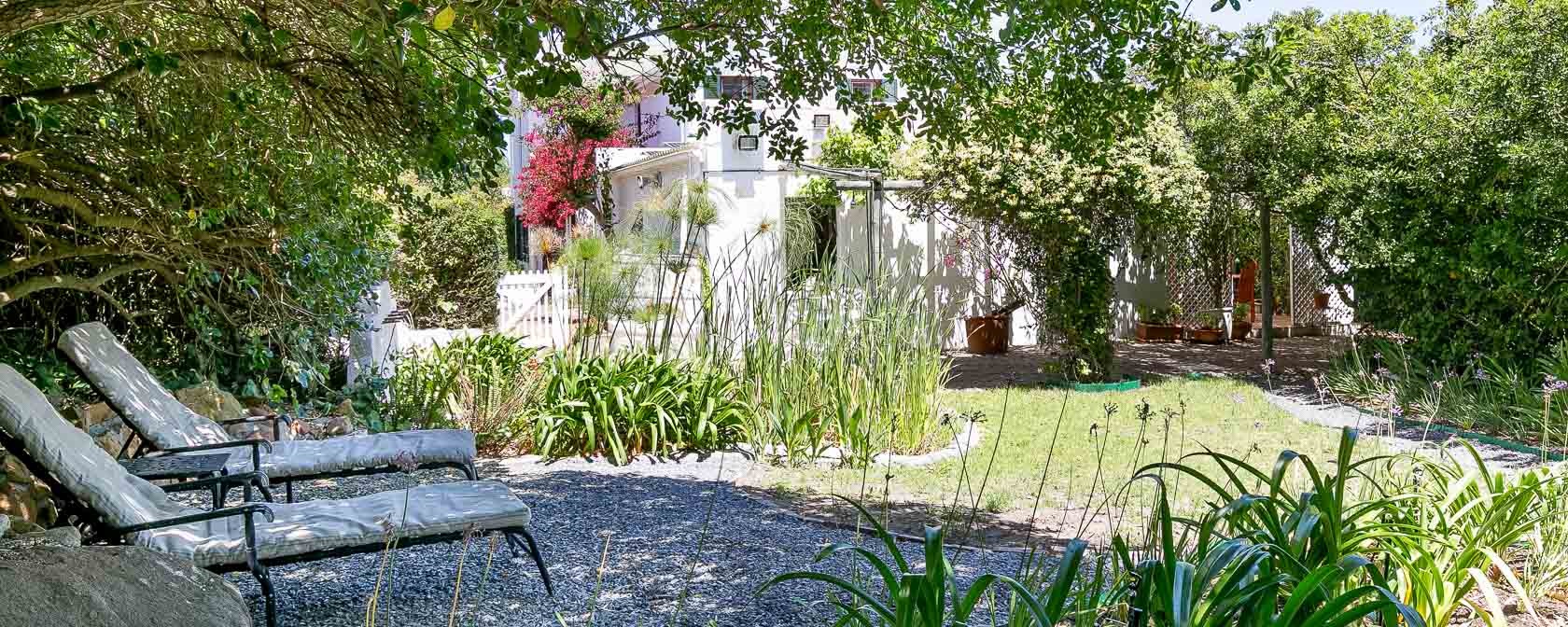 Noordhoek Garden Cottage is directly adjacent to the self-catering house Little Paradise. It is separated from Little Paradise by garden doors, tall bushes and screens and offers a high level of privacy, particularly due to its north-facing private garden. Although there is a pool on the property, it is part of the personal space of the guests from Little Paradise.