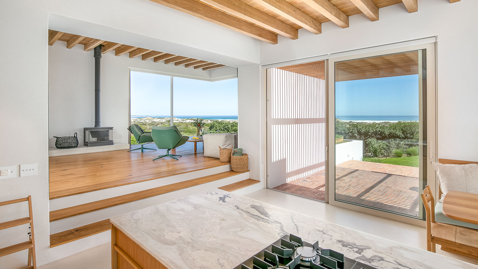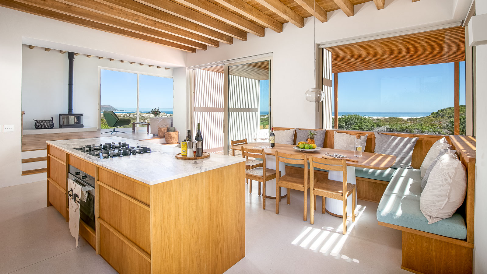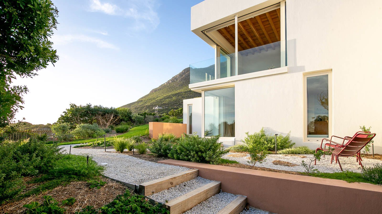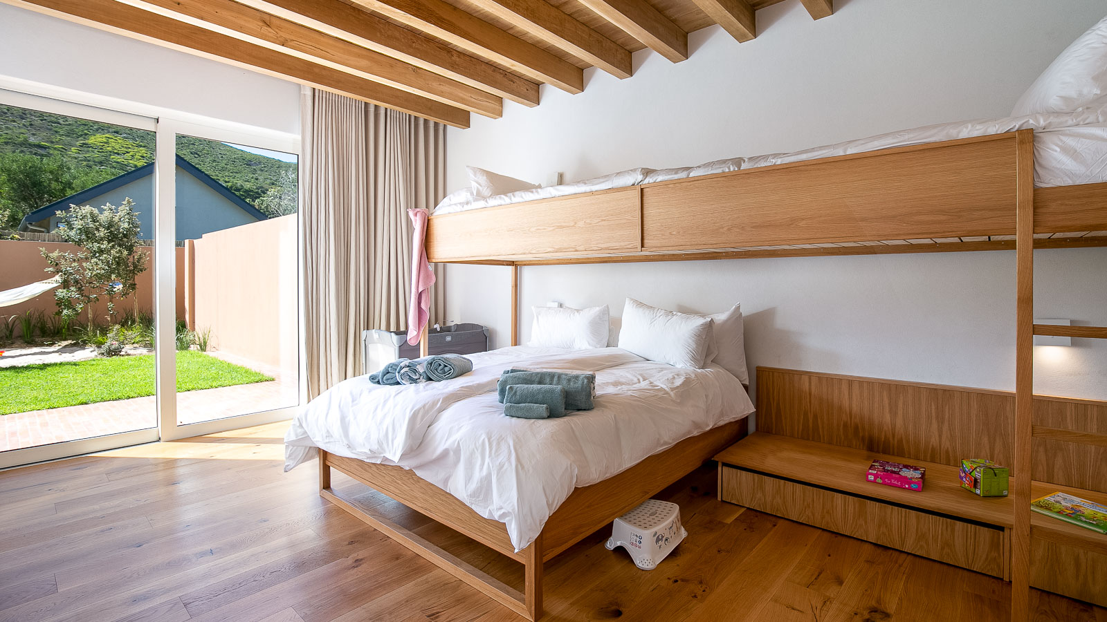 ![]() ![]() | Fourth bedroom en-suite (downstairs apartment) • King size bed extra length • Large glass sliding pocket doors • Spectacular views of the beach and ocean • Direct access to garden with outdoor table and 2 chairs • Spacious wardrobe • Desk • Well equipped kitchenette with bar fridge, Nespresso machine, kettle, toaster, cutlery • Dining table with 4 chairs • En suite bathroom with shower, basin and toilet • Heated towel rails • Underfloor heating in bathroom • Hair dryer provided • Quality cotton linen and towels • Pool-, bath-, hand towels and face cloth • Shower gel, shampoo and soap |