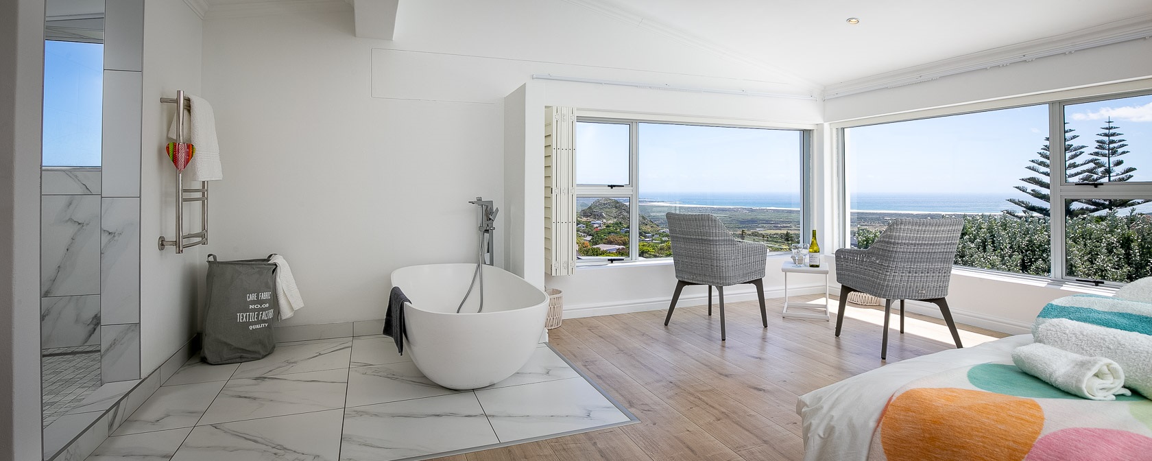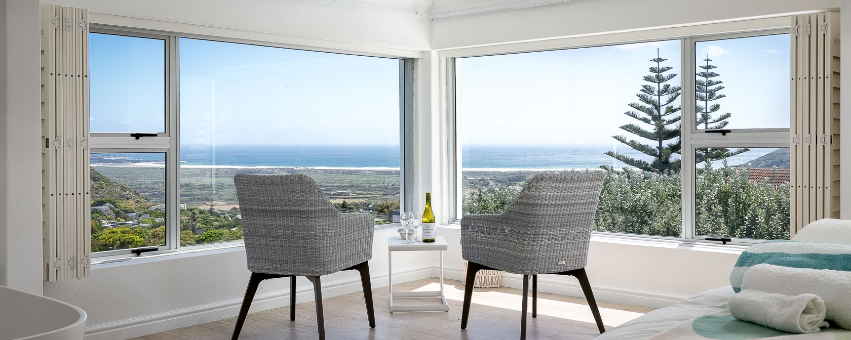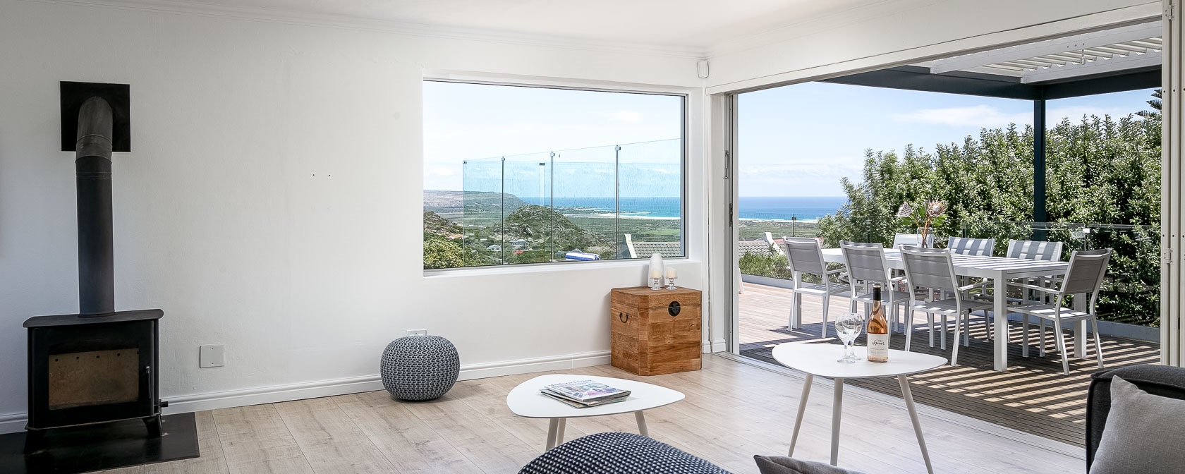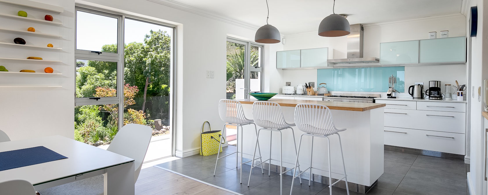 Well positioned high up on the slopes of the Silvermine Nature Reserve, this modern self-catering villa offers breathtaking views of the whole coastline and the lush greenery of the mountains.
