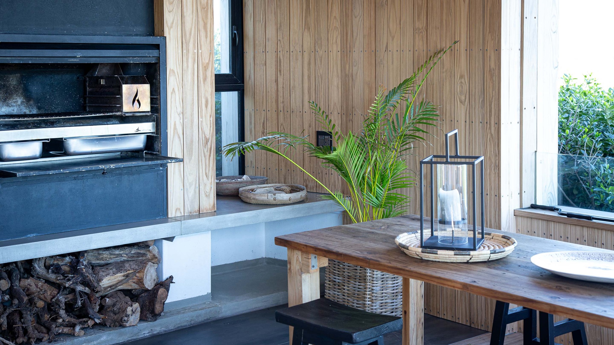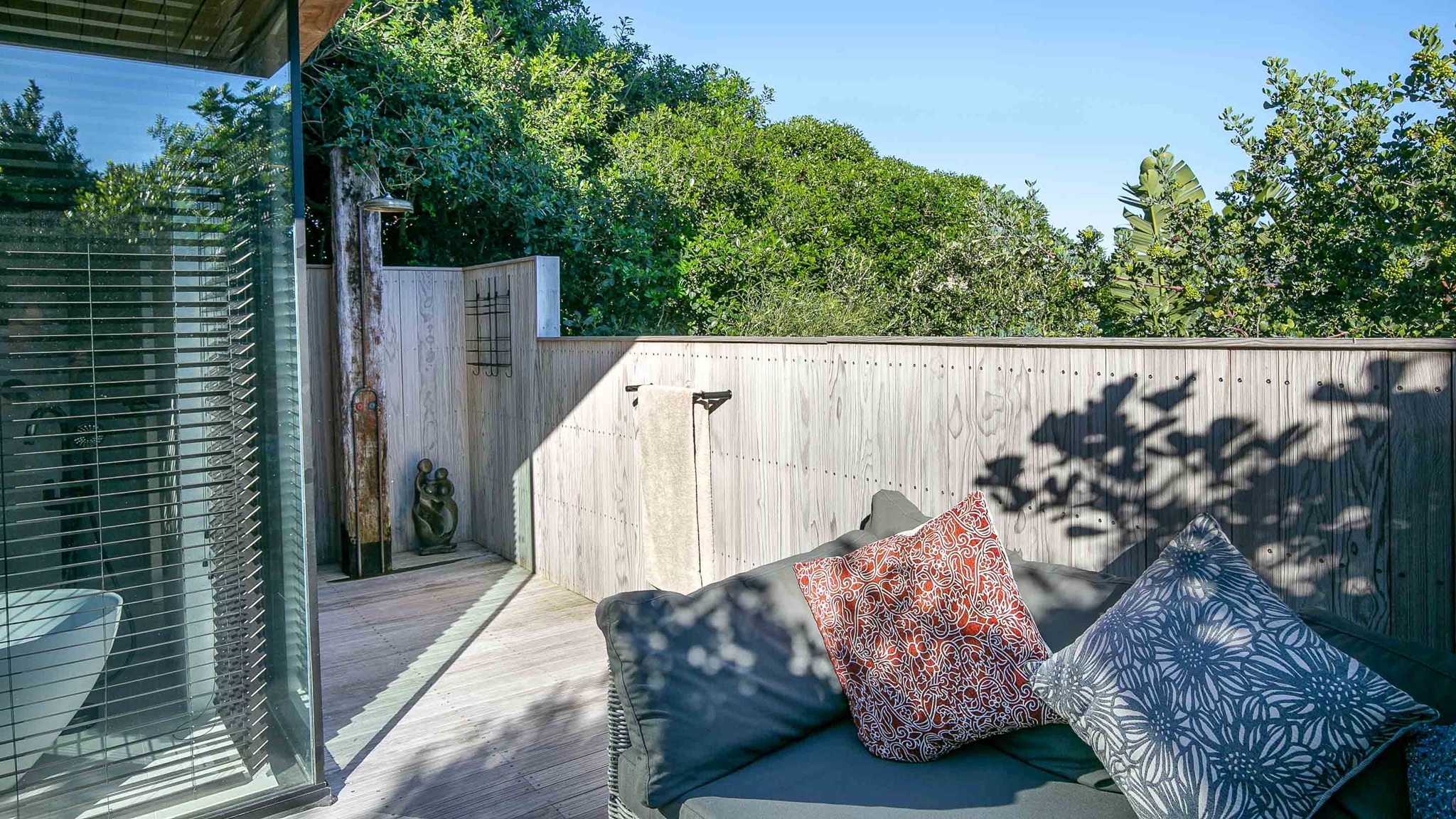 ![]() | Outdoors: • Veranda with dining table and 8 barstools • Comfortable outdoor furniture on veranda • Comfortable outdoor furniture in garden • Built in Braai (barbecue) Wood • Fully enclosed garden under the Milkwoods • Two pool loungers • Outdoor shower • Views of the sea, the beach and the dunes • |