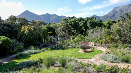 At the heart of the property lies the natural pool, a peaceful eco-friendly oasis framed by seasonal blooms, birds and dragonflies. Equipped with a swim jet, it offers a refreshing place to relax as well as an energising option for more active swimmers. Meandering pathways lead through 400 metres of fynbos-rich garden, past hidden seating corners and towards a fire pit designed for slow, atmospheric evenings beneath the stars.